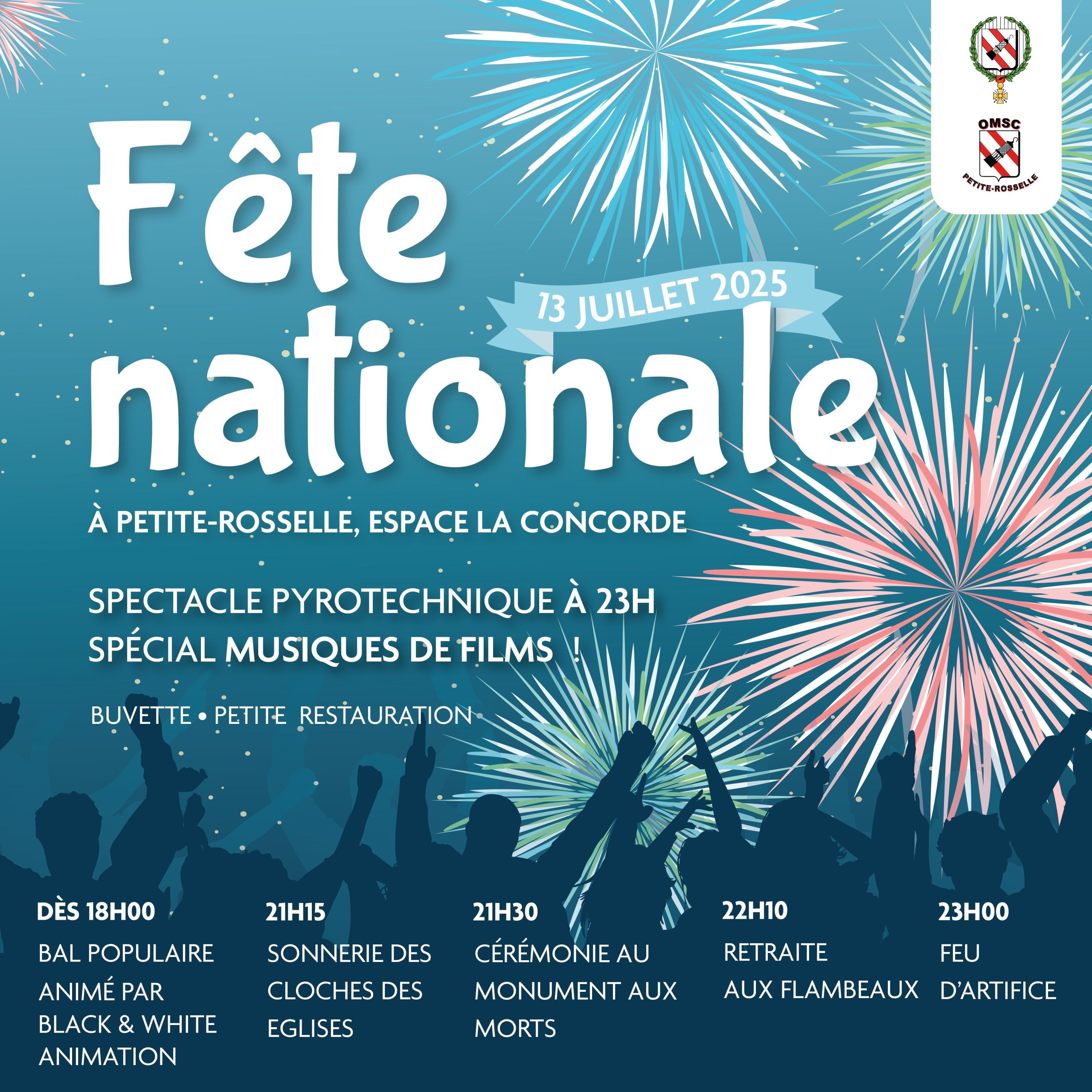 En famille ou entre amis, venez célébrer la Fête nationale à Petite-Rosselle ! Rendez-vous le 13 juillet à l’Espace la Concorde dès 18h00
